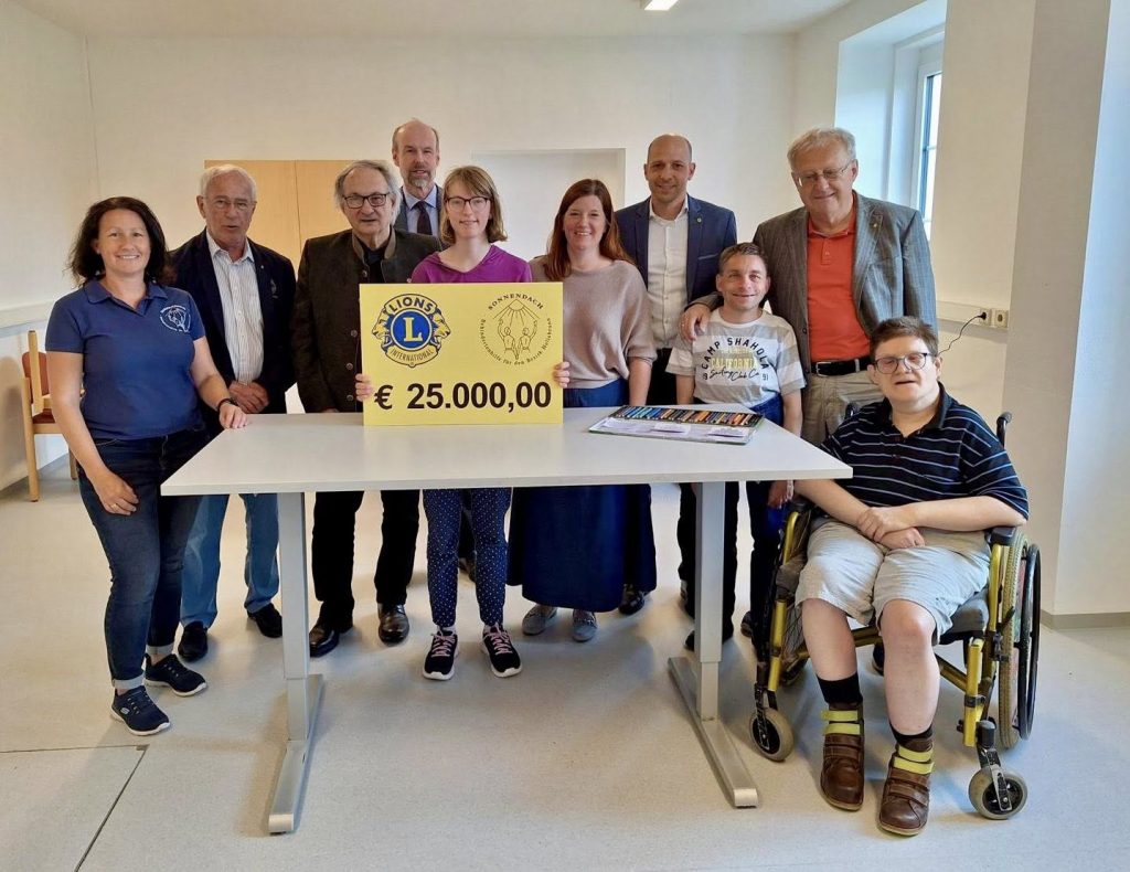 Großartige Unterstützung für die durch das Unwetter 2024 schwer getroffene Behinderten-Tagesstätte Sonnendach in Hollabrunn: Die Lions Clubs Weinland, Hollabrunn, Horn und Stockerau-Korneuburg spendeten insgesamt 25.000 Euro – für Soforthilfe, neue Arbeitstische und den Bau einer Schutzmauer. Bei der symbolischen Übergabe am 2. Juni dankten Obfrau Mag. Nicole Feucht und Sonja Dürnsteiner für die großzügige Hilfe.